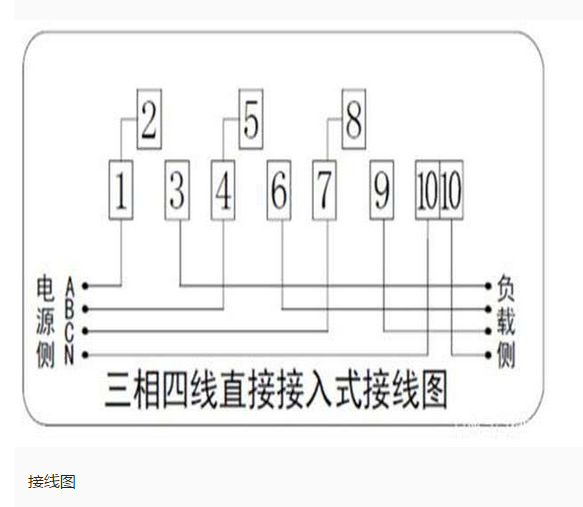 三相預(yù)付費電表直接式的接線比較簡單,編號從1到10,有的朋友只看到底部的7個接線柱,其實還有2、5、8三個接線柱,只不過這三個接線柱和147用連接片短接了,所以不需要再接線。這種直接式的三相四線電表的接線順序是:147接三相電源的進線,369接出線,最后的10接進出的零線。