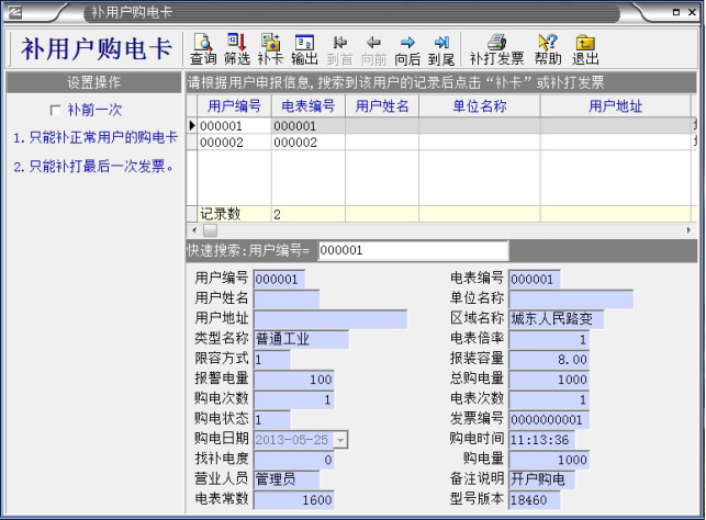本章節(jié)通過圖片和文字,詳細(xì)的介紹預(yù)付費(fèi)電表在售電系統(tǒng)補(bǔ)卡的步驟: