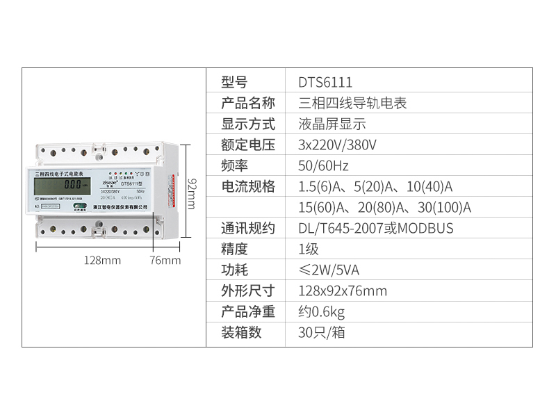 DTS6111、DSS6111型三相導(dǎo)軌式電能表7P(RS485通訊接口)