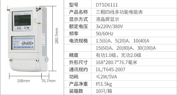 該表能計量各個方向的有功、無功電量及需量, 分相計量有功、無功電能,具有雙路RS485和調制式紅外通訊、按鍵及紅外停電喚醒抄表等功能,它性能穩定、準確度高、操作方便。