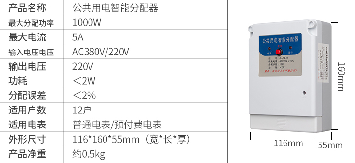 若有用戶的空氣開關斷開或未接到用電分配器上時,分配器自動識別該用戶未用電而不參與公共用電分配。