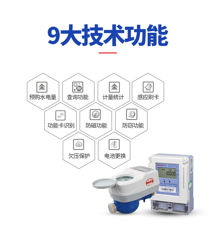 1、概述預(yù)付費(fèi)水表是以旋翼式水表為基表,由干簧管取信裝置、低功耗電控閥門、微電腦控制系統(tǒng)、射頻卡信息系統(tǒng)集合而成的智能水表。該產(chǎn)品改變了傳統(tǒng)的用水收費(fèi)方 式,由“先用水后交費(fèi)”變?yōu)椤跋冉毁M(fèi)后用水”, 每次售水收款都有記錄,解決了“收費(fèi)難、賬目亂”這兩個水費(fèi)管理工作中的難題。有遠(yuǎn)傳抄表功能的預(yù) 付費(fèi)水表還可實(shí)時(shí)統(tǒng)計(jì)用水?dāng)?shù)量,為水費(fèi)結(jié)算提供依據(jù)。產(chǎn)品符合國家標(biāo)準(zhǔn)GB/T778-2007《封閉滿管道中水流量的測量、飲用冷水水表和熱水水表》的全部技術(shù)要求。