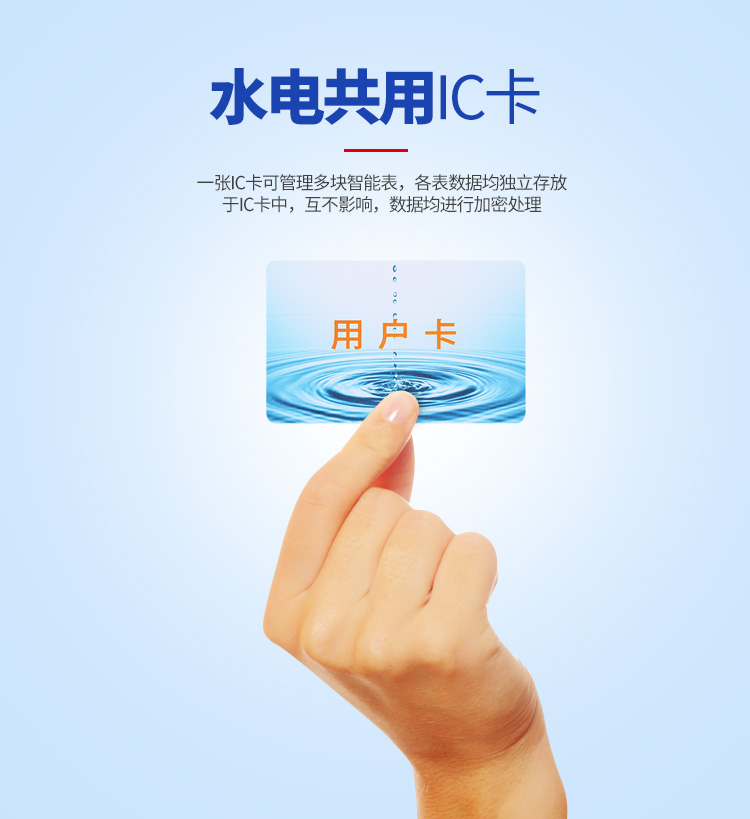 我公司生產(chǎn)的智能水表與電能表實(shí)現(xiàn)一卡通,用戶只需一張卡,即可同時(shí)管理家中所用的電表、水表。